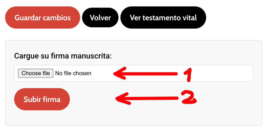 Después de que hayas editado el testamento vital por primera vez, verás un botón negro adicional “ver testamento vital“, desde donde puedes ver, imprimir y enviarlo.