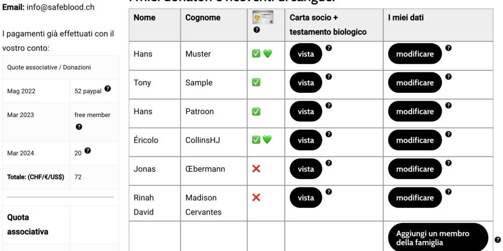 Questo può essere fatto solo tramite la pagina “registrati” (https://safeblood.it/it/diventa-un-socio/ – o con l’estensione del proprio paese invece di “it”) sul nostro sito web. Si prega di compilare tutto ciò che è richiesto…vi guideremo attraverso il processo di registrazione, dove inserirete, tra le altre cose, i vostri dati personali e vi verrà chiesto del vostro stato di vaccinazione. Caricate anche un documento di identità, perché dobbiamo essere sicuri che siate un vero essere umano. Vi chiediamo anche di pagare una quota associativa per due motivi: primo, la nostra organizzazione è diventata molto grande e amministrativamente complessa; il che costa denaro. E secondo, questo è un passo in più per assicurarci che non siate “membri gaga” o addirittura “talpe” (infiltrati) – solo quei membri che sono effettivamente per e con noi si fanno carico di questa spesa e sforzo extra.